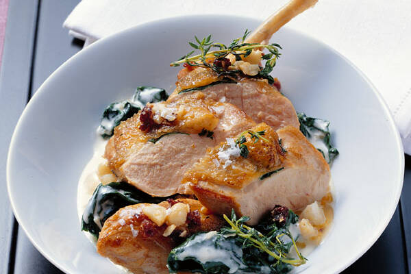 Perlhuhnbrust mit Spinat, Rosinen und Macadamianüssen Rezept | Küchengötter