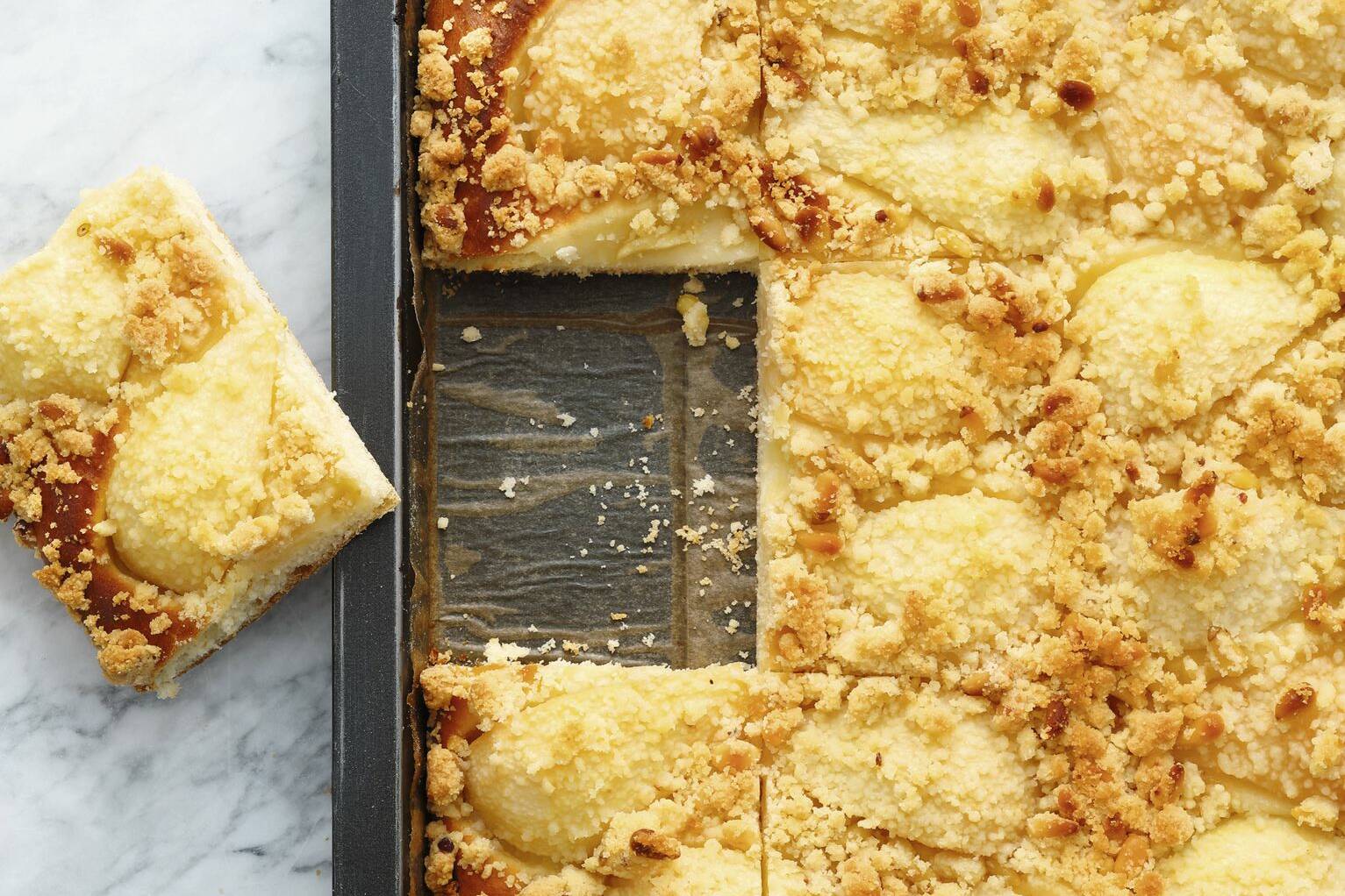 Pinienkern-Mürbteig mit Salzkaramell-Füllung und Nussstreuseln: Rezept ...