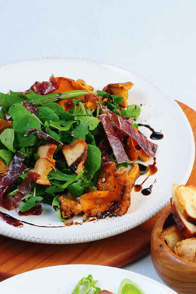 bresaola carpaccio auf salat mit estragon topping