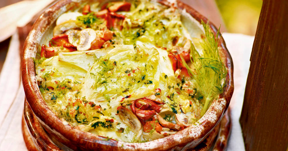 Fenchelgratin mit Champignons Rezept | Küchengötter
