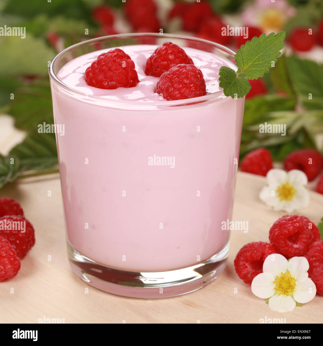Joghurt mit Himbeeren Stock Photo - Alamy