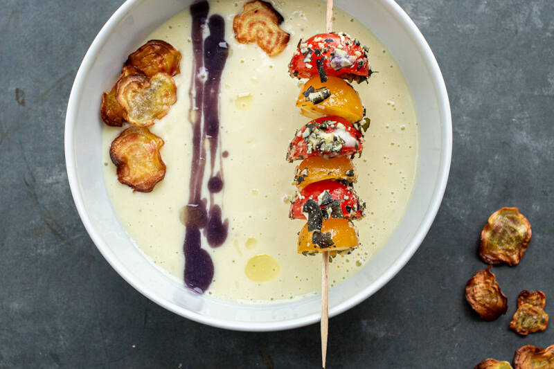 Pastinakencremesuppe mit knusprigen Ringelbete-Chips Rezept | Küchengötter