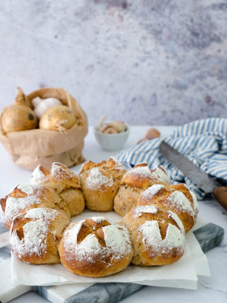 Schneller Protein Zwiebel-Knoblauch-Brötchenkranz - Dinkelliebe