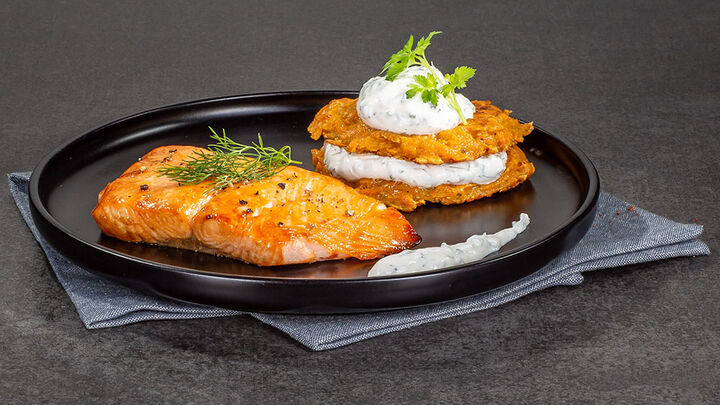 schweinebraten mit bärlauchkruste und petersilien yam rösti