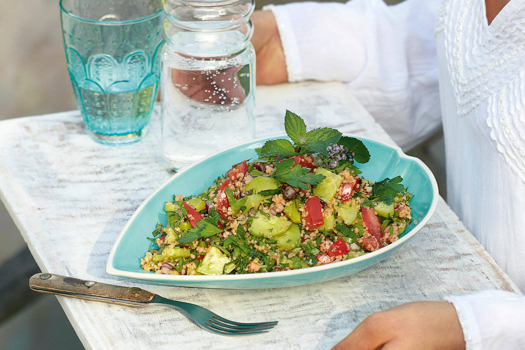 tomaten kräuter salat mit zwiebeldressing